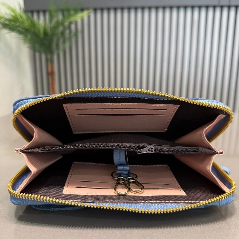 Portable Soft Leather Crossbody Bag for Women | Stylish Mobile Purse & Wallet | Light Blue